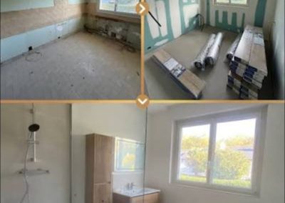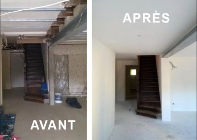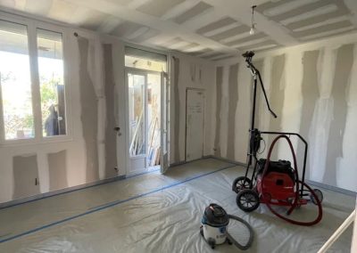 Protection des lieux, préparation des supports, pose des cloisons, isolation, enduits et peinture. Planning convenu à l’avance, chantier suivi par le même interlocuteur.